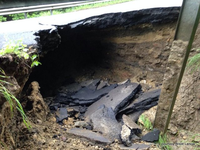 A massive hole on Route 116 has closed traffic along the state highway. Photos courtesy of Brent Lancia. |