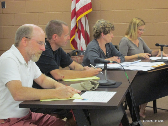 Williamstown School Committee members Chris Jones and Dan Caplinger join Lanesborough School Committee Chairwoman Regina Dilego and Mount Greylock Regional School Committee member Colleen Taylor, right, at Thursday's meeting. |