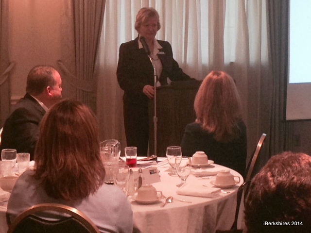 Maureen Baran, vice president of campaign for the Northern Berkshire United Way, talks about the new structure of the annual campaign at the Williams Inn on Friday morning. |