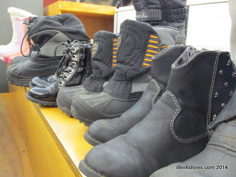 A line of boots ready for winter at the Williamstown PTO clothing sale. |