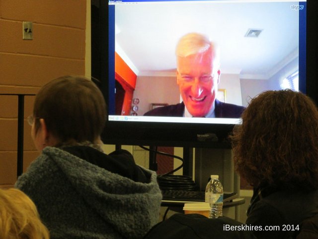 School committee members from Lanesborough and Williamstown interview Stockbridge's Donna Moyer.