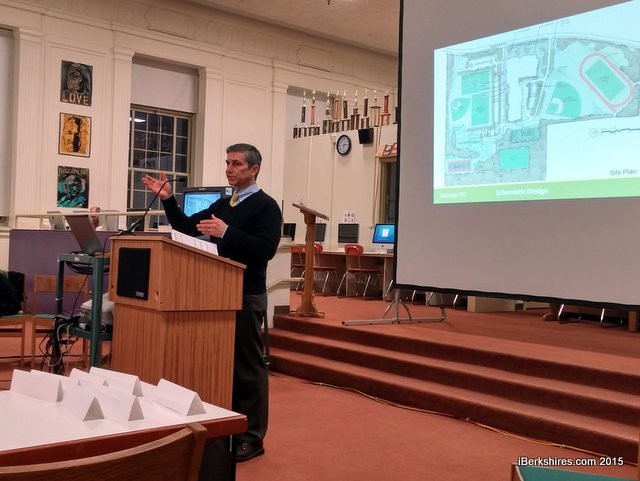 Carl Franceschi of DRA presented the changes to the plans for a new Taconic High School. A number of items were reduced or eliminated to bring the budget to $116 million.