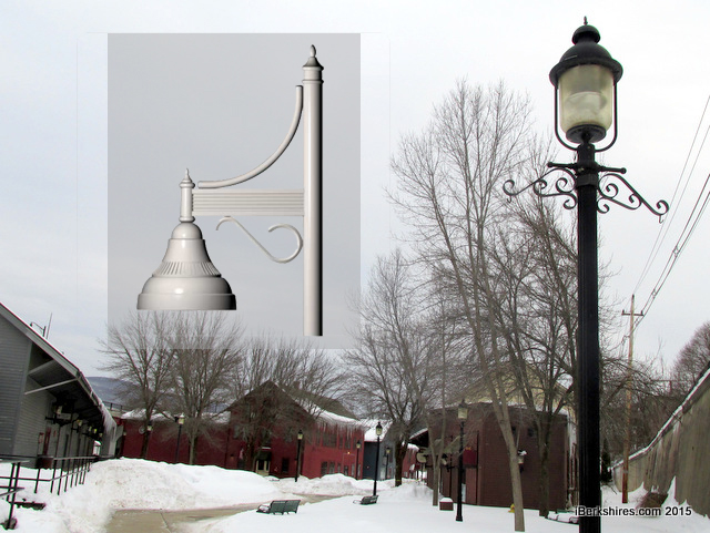 Community Development Director Michael Nuvallie contacted the Berkshire Design Group during the meeting to ensure the lights would be black and have the distinctive S-curve flourish the panel wanted. Yes, they could and, yes, the panel approved.