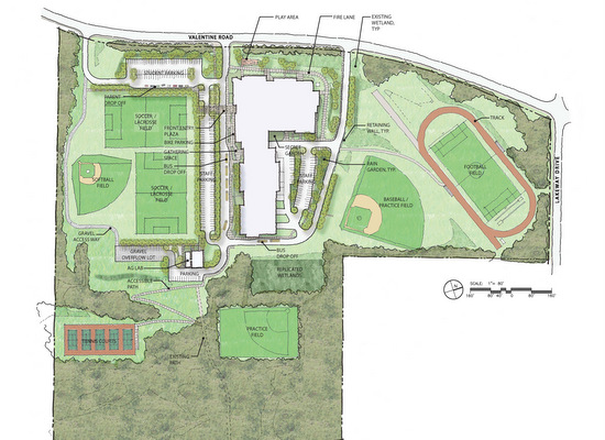 The building is three-stories with the top two floors being for the academic classrooms and the vocational shops on the ground floor. The entrance to the building will sit close to where the current visitor's parking lot is and the main feature will be large glass windows to allow more natural light.