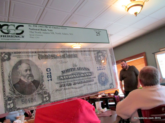 Colon's illustrated talk at the North Adams Historical Society's annual meeting on Sunday at Boston Sea Foods included some carefully preserved banknotes dating from the early 19th century through the 20th century's national banking period.