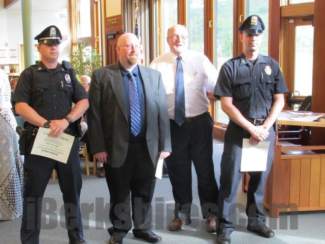 North Adams Police personnel were recognized for saving the life of woman who's airway was completely block by administering the Heimlich maneuver. See more photos here. |