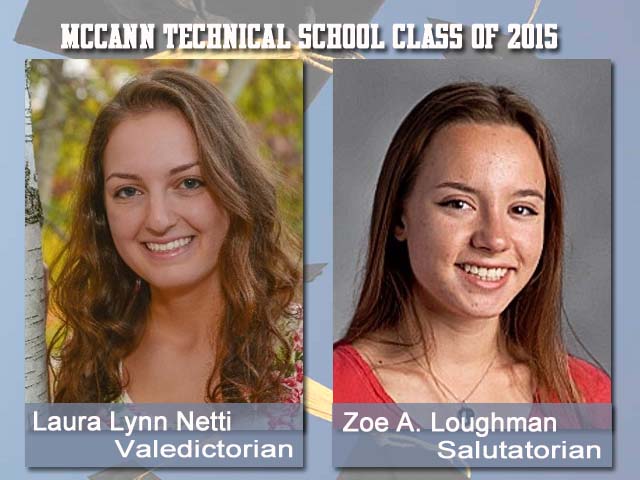NORTH ADAMS, Mass. — Laura Lynn Netti and Zoe Angela Loughman have been named valedictorian and salutatorian, respectively, of the McCann Technical School class of 2015, according to Principal Justin Kratz.