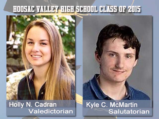 CHESHIRE, Mass. — Holly N. Cadran has earned the distinction of being named as valedictorian and Kyle C. McMartin as salutatorian for the class of 2015 at Hoosac Valley Middle and High School.