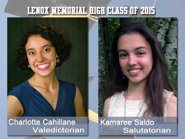 LENOX, Mass. — Charlotte Cahillane and Kamaree Saldo have been named valedictorian and salutatorian, respectively, of the 2015 class of Lenox Memorial High School.