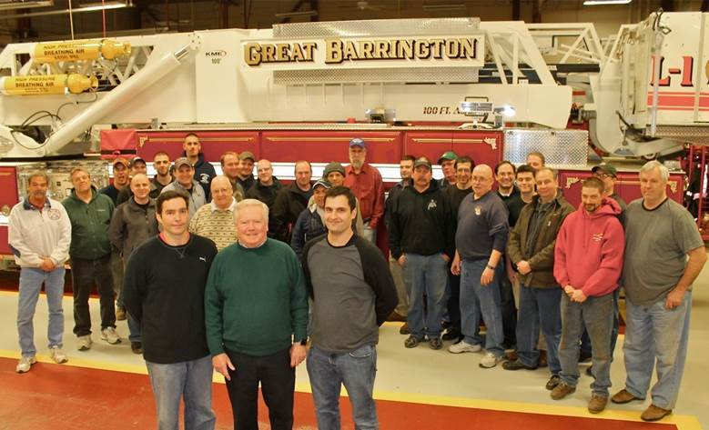 Chris Nelson, Ed McCormick and Marc Palumbo posing with the Great Barrington Fire Department. Photo courtesy of Lee Rogers