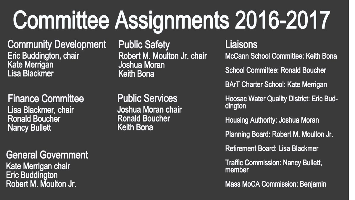 "As a I look around the room I see a superb collection of leaders, dreamers, thinkers, doers and spirited community advocates who are dedicated to making North Adams and the greater Northern Berkshire region a place where we can be proud to live, work, play," he said. "I look forward to engaging in critical decision making, truthful discourse, municipally meaningful action ... we have all been put in these seats for a reason: to represent the residents and work for the greater good."