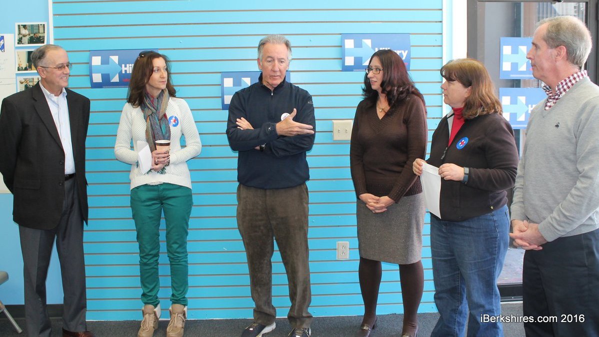 The congressman joined local supporters in Clinton's Pittsfield campaign field office Saturday to rally support for the former secretary of state. Clinton is going up against Vermont's U.S. Sen. Bernie Sanders in seeking the nomination.
