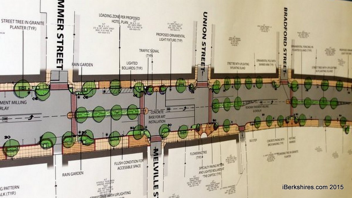 The multi-phased, $18 million improvement project is funded by a grant from MassWorks Infrastructure Program, of the state Office of Housing and Economic Development. It focuses on South and North streets and extends from Memorial Park on South Street to Wahconah Park toward the upper end of North Street. Streetscape improvements include sidewalk treatments; special planting areas and trees; bump-outs at crosswalks; ornamental lighting; increased parking spaces; bike racks, benches, trash and recycling receptacles; and public art spaces.