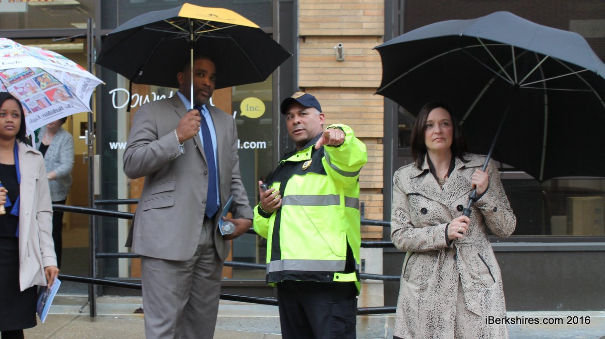 Through nearly two hours in rainy weather Thursday, Tyer pointed out the renovations of the former fire house into the 1Berkshire offices, the current condition of the police station, and the success arts and culture have had in turning the downtown around. Through a series of public and private partnerships, the city invested in a number of those buildings to drive the arts and culture economy.
