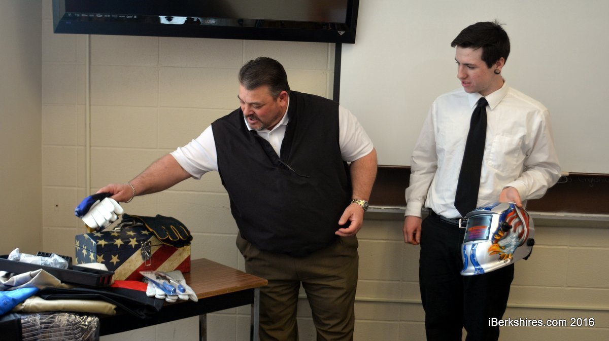 Houle gave Tanner a few gifts donated by welding supply companies and he will head north with a new automatic lens helmet, a new tool box, gloves, and other welding gear. He was also provided with all of the necessary SkillsUSA garb.