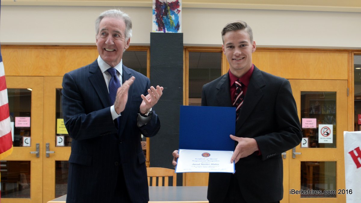 "One of the reasons that I wanted to stop by today was to not only point out Jared's accomplishment, which is rare by any standards, but to also call attention to what happens here at Hoosac Valley," Neal said. "It's an opportunity to give the teachers a pat on the back, acknowledge school committee members, and the family members because this doesn't just happen."