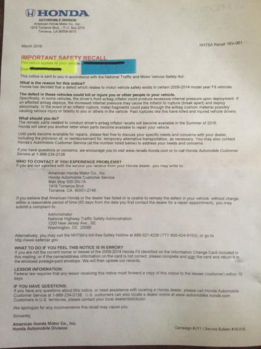 Stop Ignoring Recall Letters From Auto Manufacturers