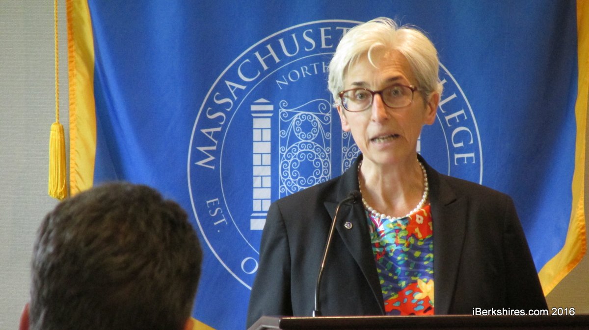 Speakers included MCLA President Jaimie Birge, Mayor Richard Alcombright, Mark Maloy of the Berkshire Regional Planning Commission; John Hockridge of the Berkshire Education Task Force; Dr. Gray Ellrodt, chief of medicine at Berkshire Health Systems; Massachusetts Broadband Institute Chairman Peter Larkin; William Kolis of the Adams-Anthony Center; Jeffrey Thomas of Lever; and Thomas Krens, a co-founder of Massachusetts Museum of Contemporary Art who is proposing two more museums for the city.
