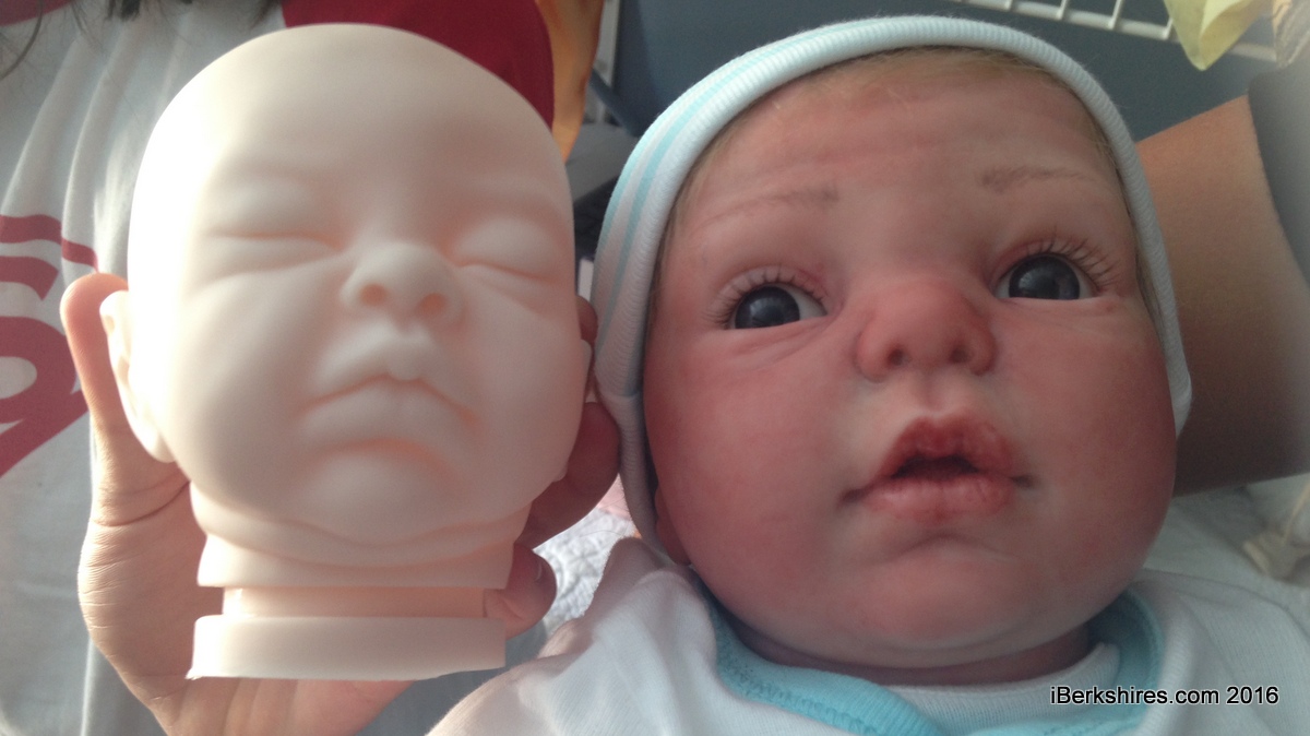 'Caleb' is Kathi George's newest dolls for sale through her Until Forever Nursery. Next to Caleb's head is a blank doll head that will become a completed baby doll.