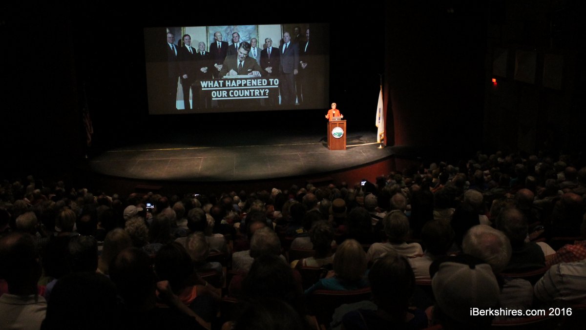Warren delivered a "Presentation on America's Agenda" at Berkshire Community College on Saturday that drew an overflow crowd filling a second auditorium to listen in. Over the course of about an hour, the state's senior senator outlined her view on policy throughout the years and rallied people to fight for a government that "works for us."