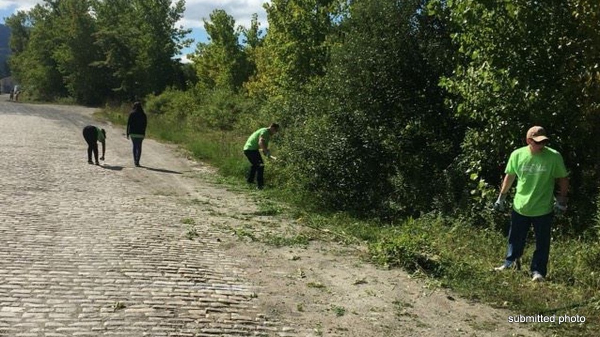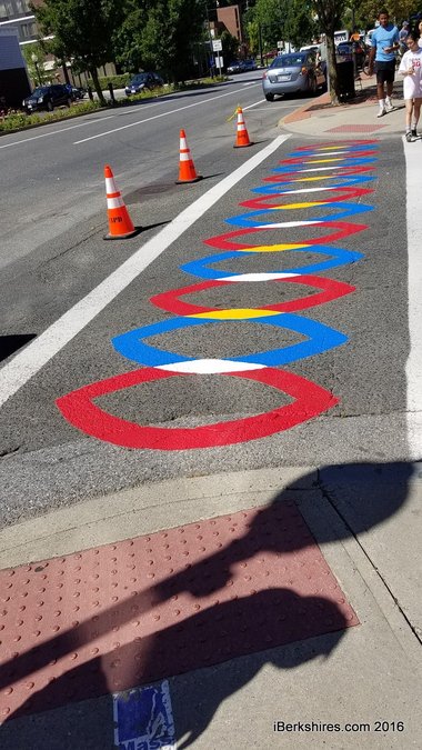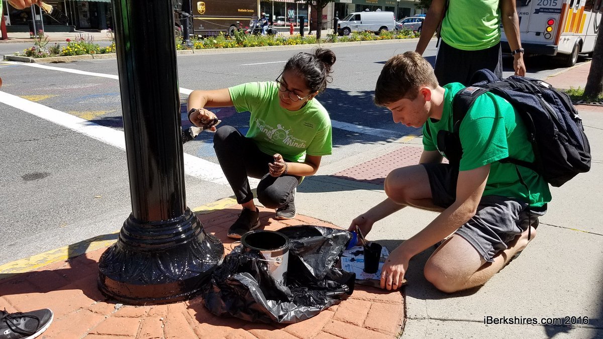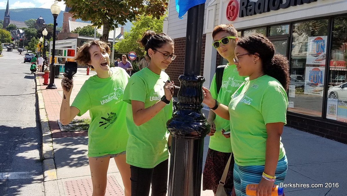 On Main Street, they were painting the vintage-looking light poles shiny black and a crosswalk in bright colors. Still more were over at Christopher Columbus Drive clearing brush around the Hoosic River.