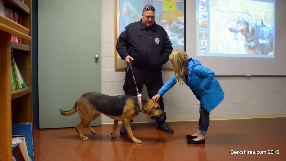 Williamstown Police Officer Michael Ziemba stopped in with Williamstown's own blood hound, Daisy, who upon entering the room, went right to sniffing.