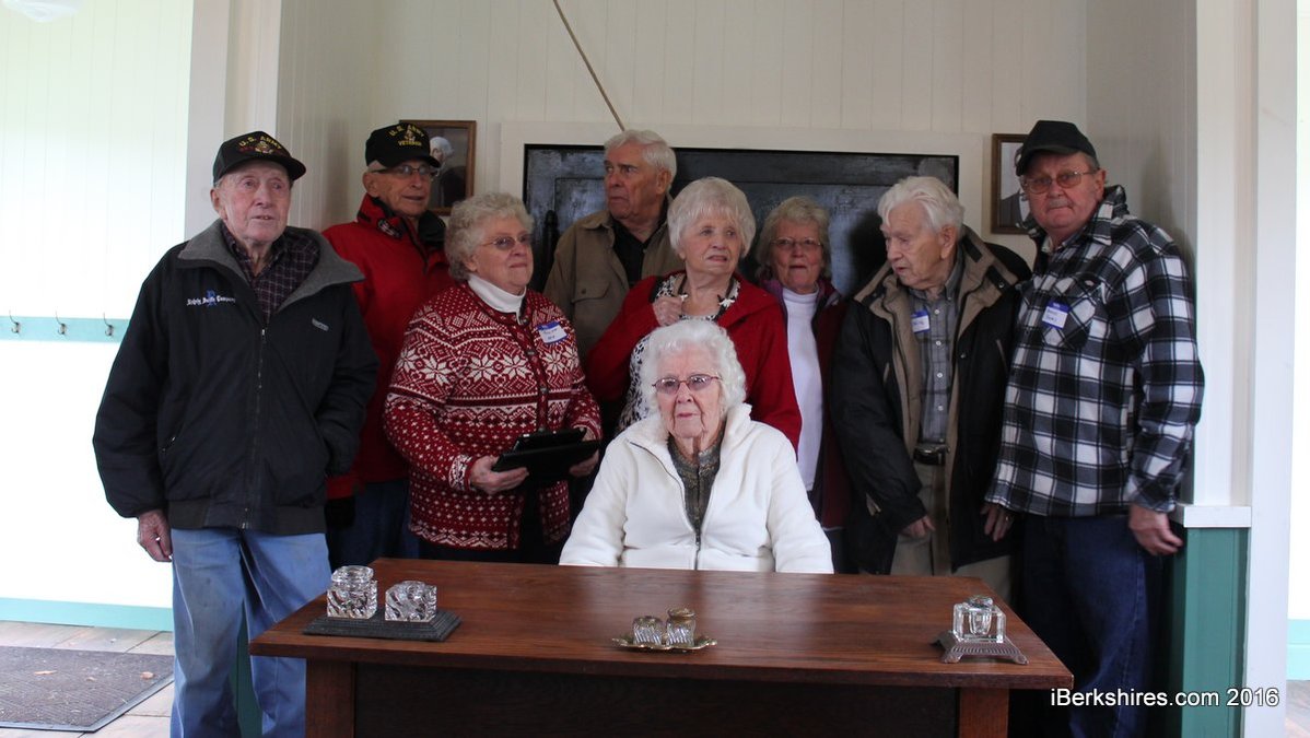 Graduates and residents made their way up the stone steps, through the small airlock entry into the schoolhouse proper. The big safe used when the building doubled as Town Hall sits behind the teacher's oak desk. A second airlock in the back opens onto a bucolic view that once also featured the outhouse. The former students recalled hauling in logs for the heating stove and buckets of water.