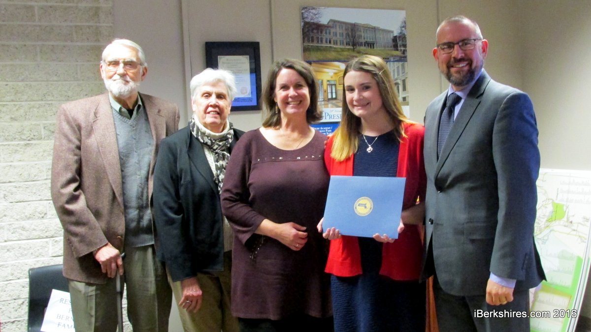 "She not only has the highest [grade point average] in the senior class but she has been an active member of both band and theater, and the Berkshire Chamber of Commerce Youth Leadership Program," Malkas said in presenting her with the certificate.