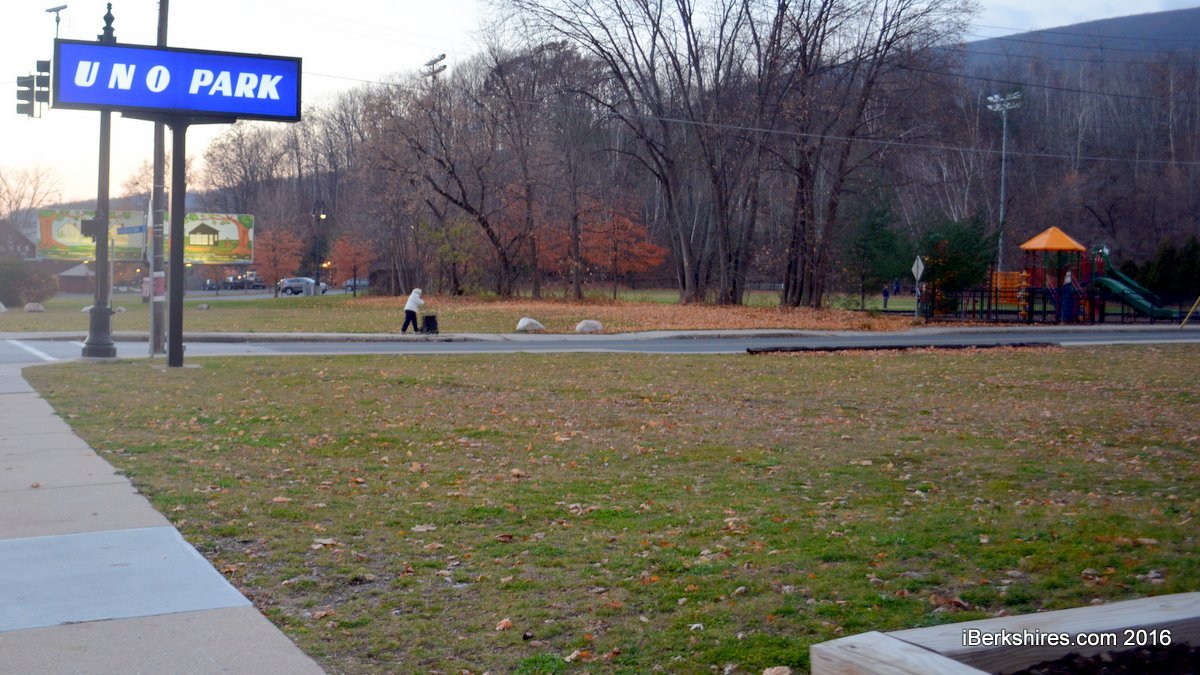 NORTH ADAMS, Mass. — The "UNO Park" sign was installed months ago above the grassy lot that once held a tire service center at the corner of Houghton and River streets.