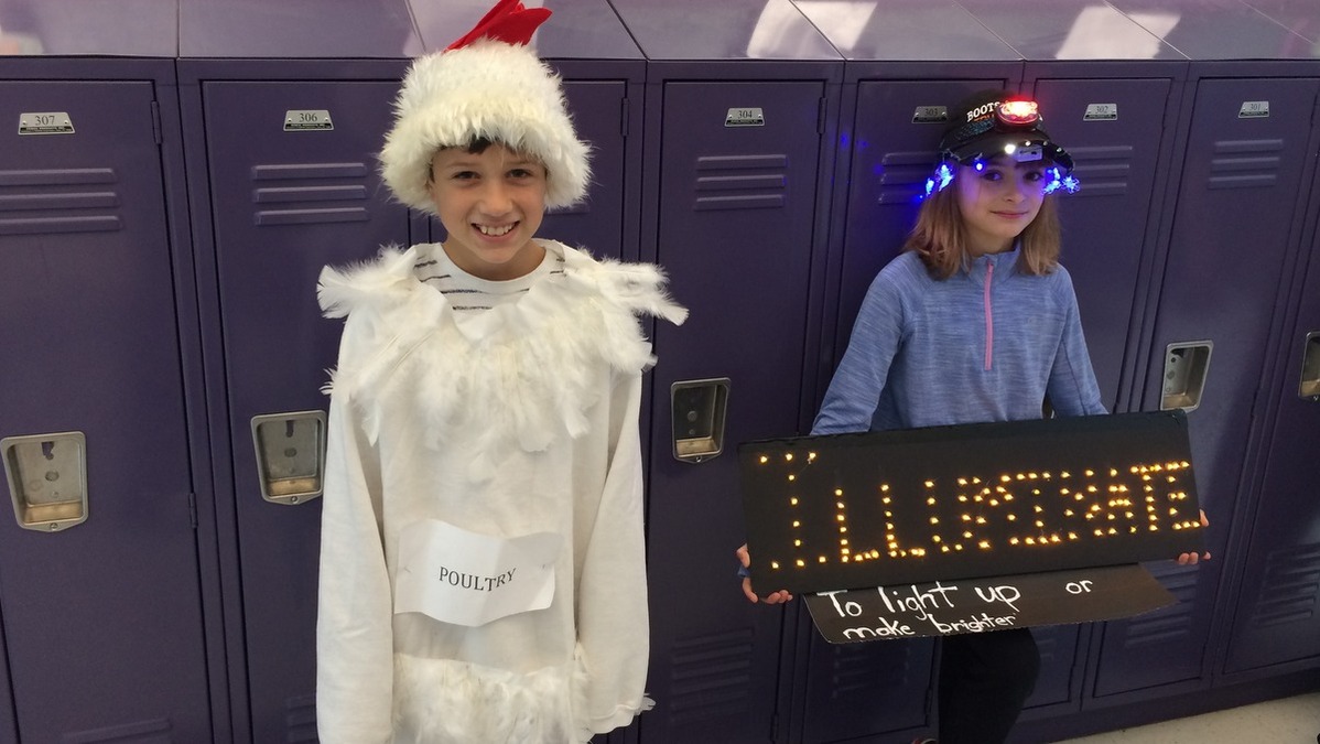Students in kindergarten through sixth grade dressed up in colorful and creative costumes signifying words of their choosing. Both new additions to students' vocabulary and old favorites were portrayed, with students dressed up to represent words like "festival," "currency," "claustrophobia" and "illuminate."
