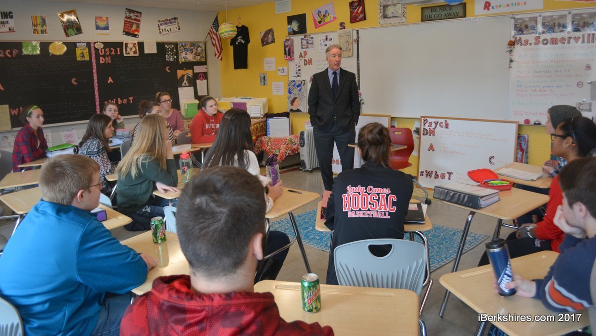 The Springfield Democrat and staunch Hillary Clinton supporter told students at Hoosac Valley High School on Tuesday morning that while disappointed with the results of the election, he felt it important to be at the transition of power.