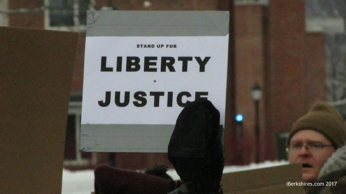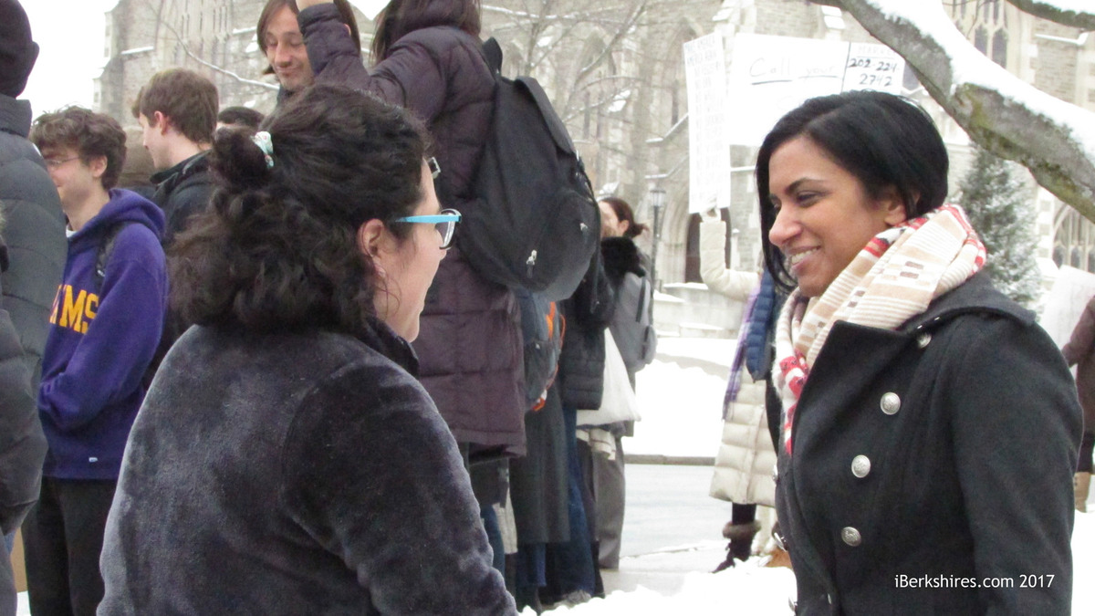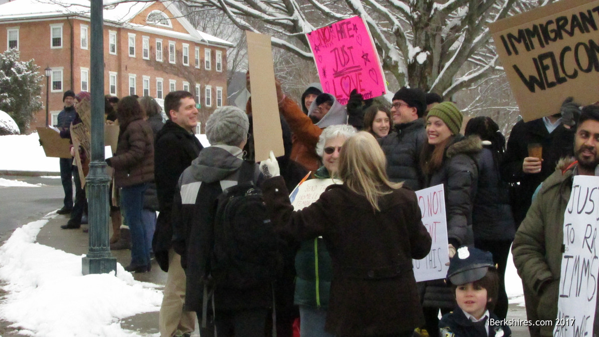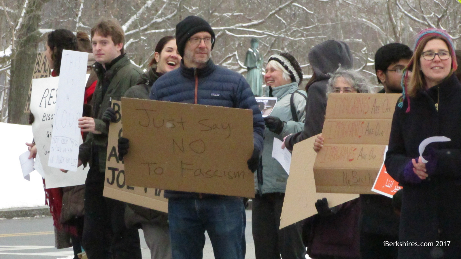 Wednesday's noontime protest was sparked by the nationwide outcry over last week's executive order suspending refugee programs and migration from seven predominantly Muslim nations. Cornell, a visiting professor in American studies at Williams, said the organizers pulled the protest together starting Saturday night and spread the word through email, a Facebook events page, word of mouth and the cooperation of groups like Northern Berkshires for Racial Justice.