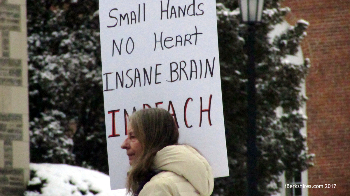 WILLIAMSTOWN, Mass. — Waving signs and chanting in the middle of a town where just 13 percent of the vote went to Donald Trump, Wednesday's anti-Trump protest may have felt a little like preaching to the choir.