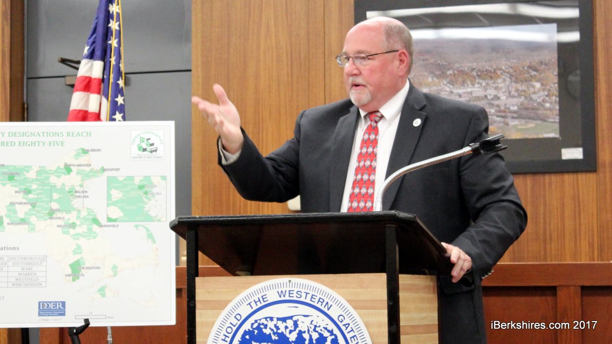 The city began planning for the designation back in 2010 with the Berkshire Regional Planning Commission, but the project was put aside for years, said Mayor Richard Alcombright. But then James Barry, the state's Western regional coordinator, came to his office and pointed to the wind turbines out the window and referenced the city's massive solar array.