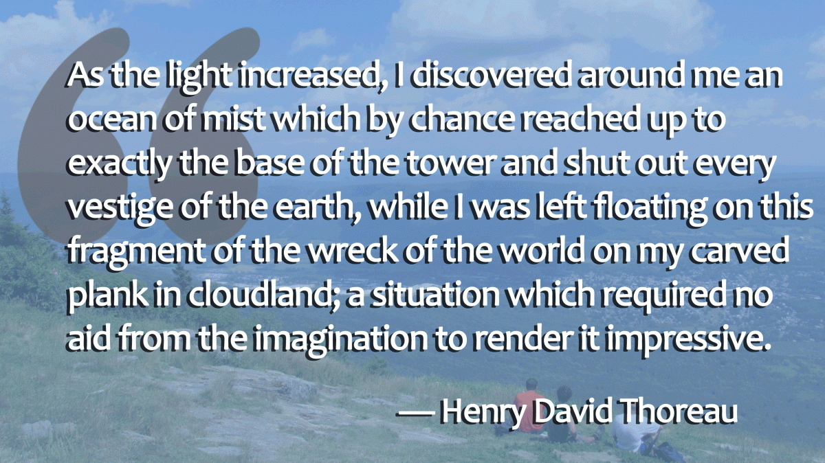 The text will come from Thoreau's "A Week on the Concord and Merrimack Rivers," published in 1867. One of his digressions on that trip was a solitary hike to the top of the state's highest summit and a passage of his time in "cloudland" is carved into stone on the summit.