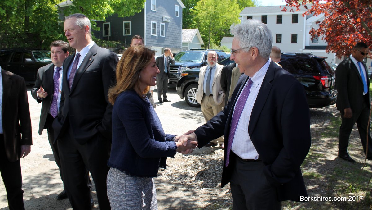 Lt. Gov. Polito greets MBI Chairman Peter Larkin in West Stockbridge.