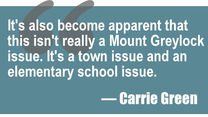 "It's also become apparent that this isn't really a Mount Greylock issue," she said. "It's a town issue and an elementary school issue. Greylock is already a region. We know how to be a region, and we know what that entails. But there are a lot of concerns from the towns and elementary schools and town officials about what that would look like."