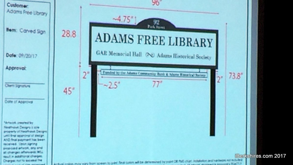 ADAMS, Mass. — With both Selectmen and zoning board approval, the library will purchase a new custom sign to place on its front lawn.