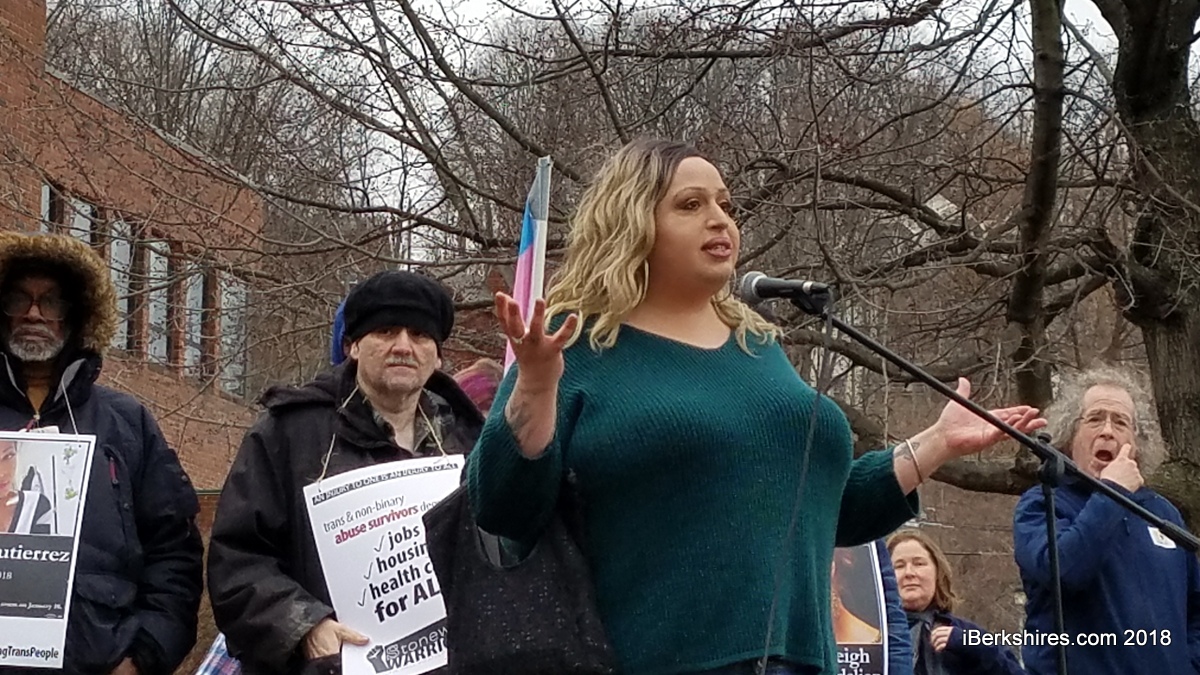 "I am 50 times more likely to experience intimate partner violence in my lifetime," said Jahaira DeAlto of Berkshire Pride. "I am 50 times more likely to experience sexual assault in my lifetime, in two weeks, when I turn 39 years old I will be 4 years past my life expectancy ... the murders of trans people are 80 percent more likely to occur among trans women of color."