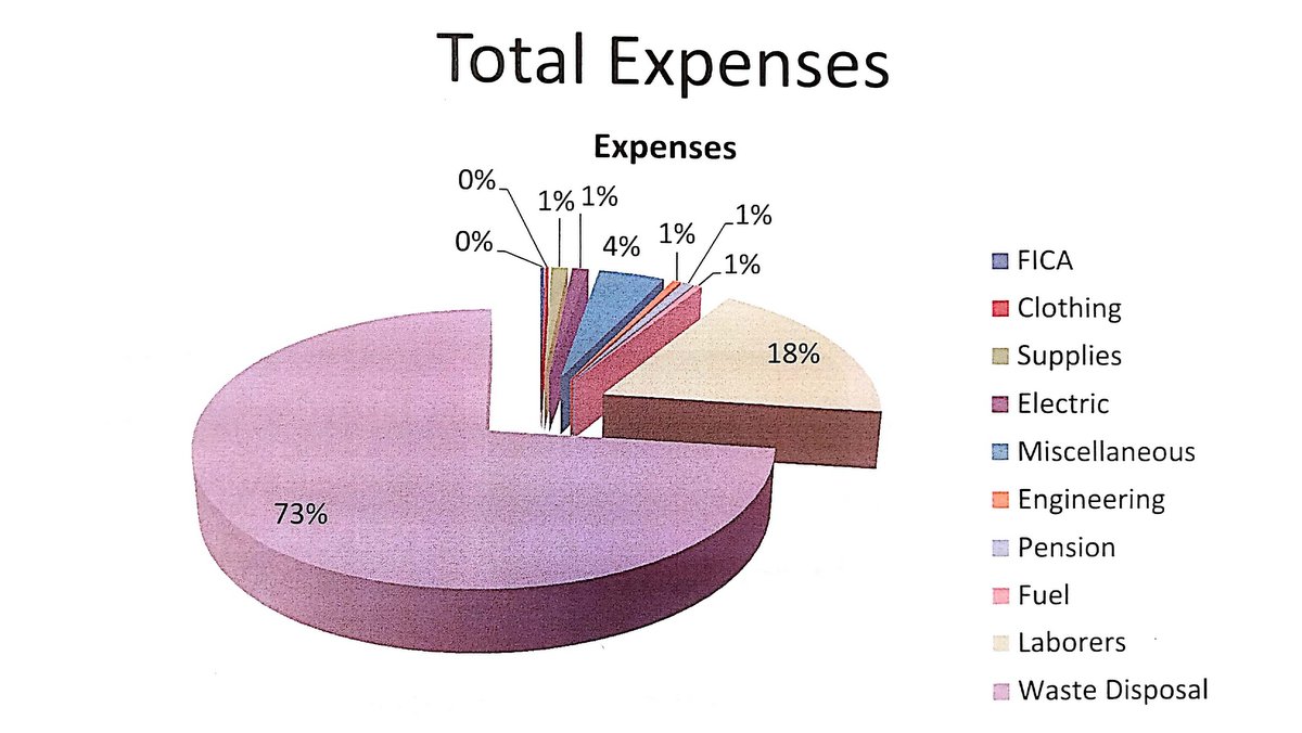 A pie chart expenses for the transfer station. The budget for fiscal 2019 is $455,184.27.