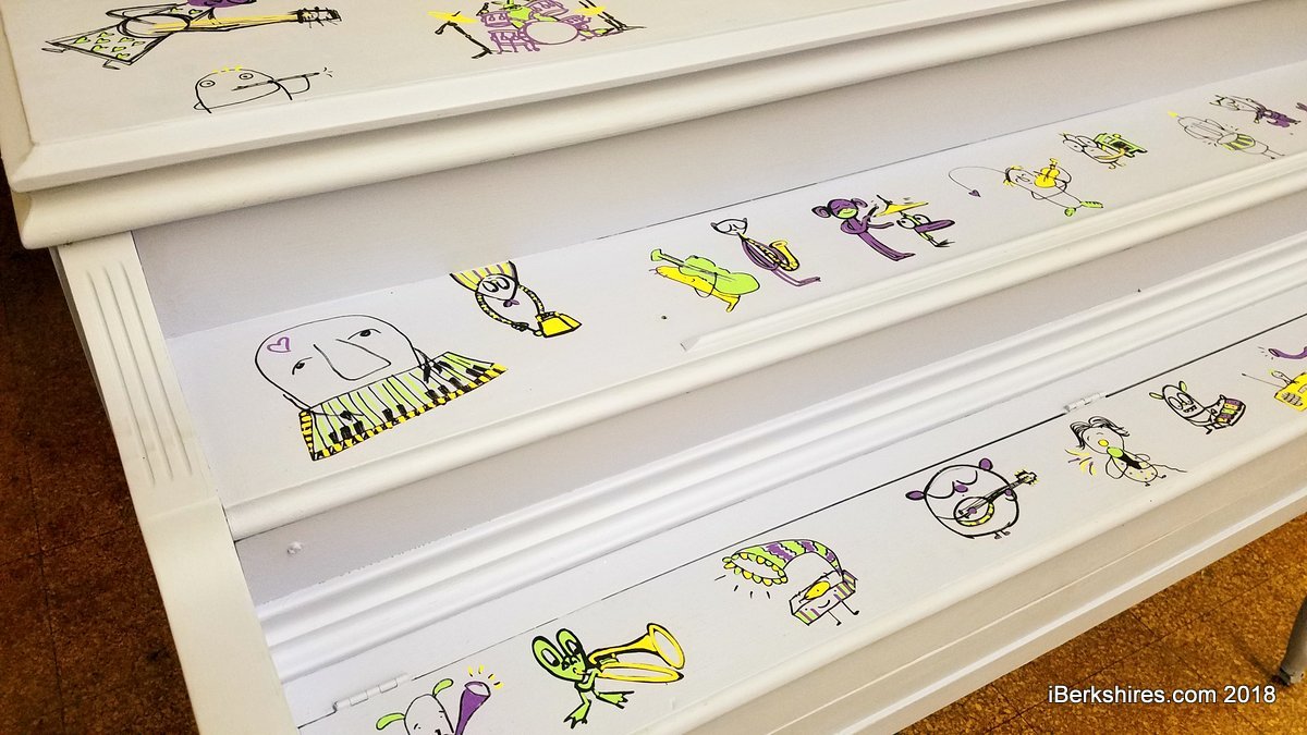Tracy Wilson, executive director of the Berkshire Music School, said the concept had been to provide a musical connection (almost all the pianos have been tuned up for playing) to a number of the reading programs at local libraries. More than a dozen pianos were donated and a couple "meetups" were held for artists to chose the one that most inspired them.