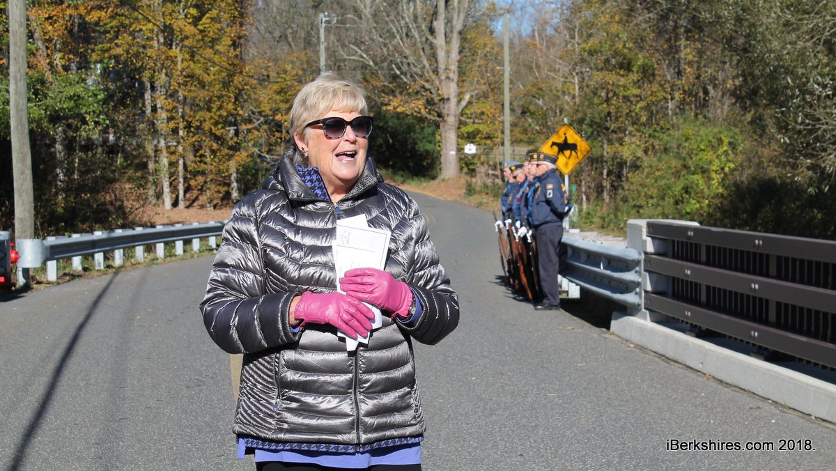 In cold and windy weather, the rifle squad fired off a few rounds, taps was played, and the honor guard lined the bridge as family, friends, and community members gathered around to unveil new signage making the bridge's name official.