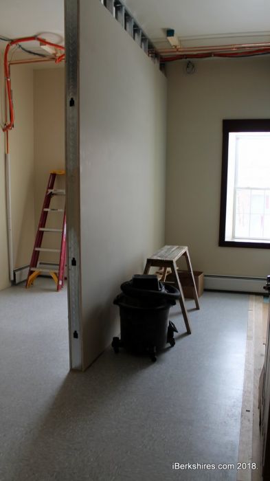 Ericson got an engineer on board to craft the blueprints to renovate the entire station. In June 2017, the work began and storage items were moved out of the department and into a storage unit in the parking lot -- costing the town $175 per month. Ericson has had some starts and stops but has made process in the southern end of the building, installing a new boiler and building and insulating walls. The former garage has since taken the shape of a new locker room, interview room, office space, and booking area.