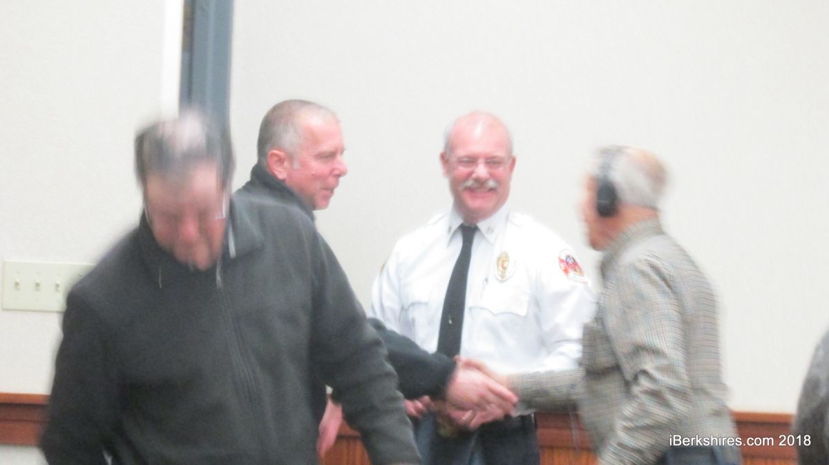 There was a rush to congratulate Michael Cozzaglio and Stephen Meranti, who will become police and fire chief, respectively, after a final vote on Dec. 26.
