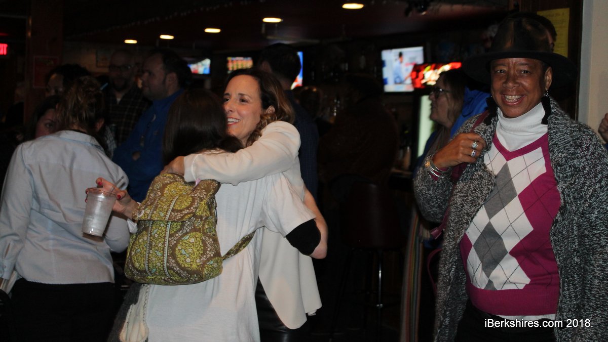 Andrea Harrington celebrates with supporters when she fended off a write-in campaign by Paul Caccaviello for district attorney.