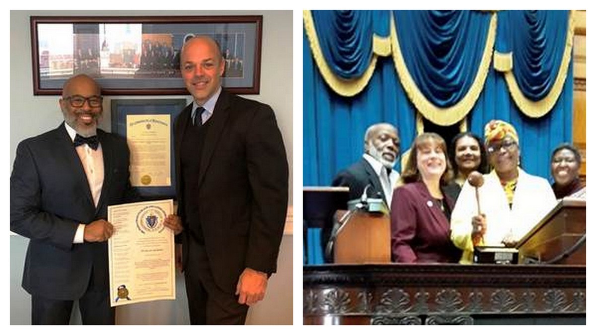 Ty Allan Jackson, local author, literacy advocate, publisher and motivational speaker, and Shirley Edgerton, founder and director of the Rites of Passage and Empowerment Program, director of Youth Alive and cultural proficiency coach for the Pittsfield Public Schools, were honored by the Massachusetts Black and Latino Legislative Caucus.