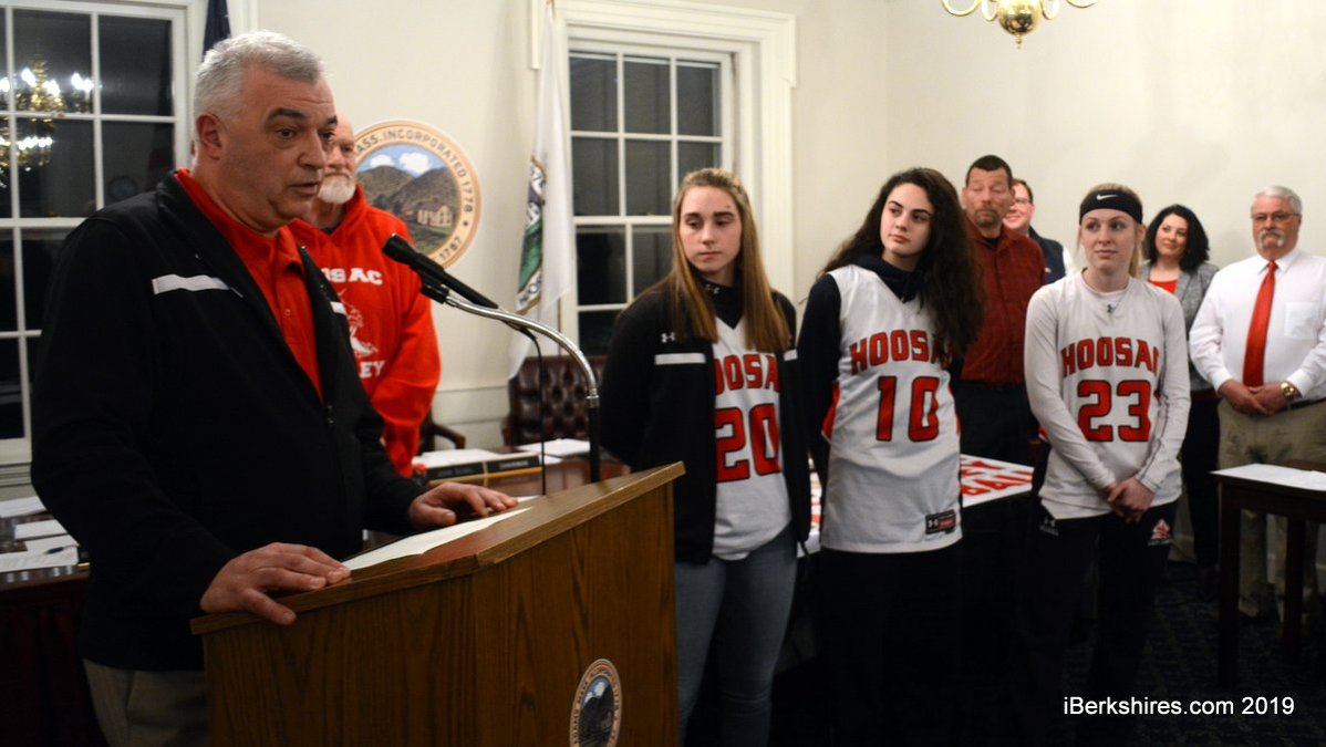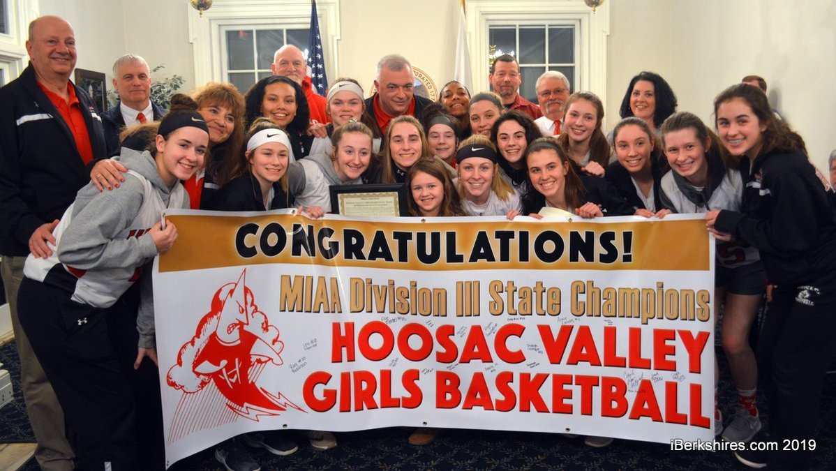 ADAMS, Mass. — Town officials congratulated the Hoosac Valley High School girls basketball team on their winning the 2019 MIAA Division III State Championship.