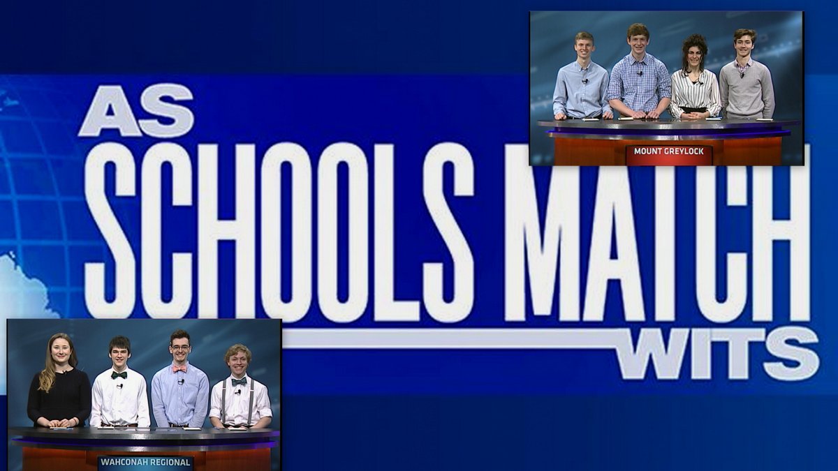 The two teams, Wahconah Regional High School and Mount Greylock Regional School, will spar on "As Schools Match Wits," airing on WGBY public television Saturday, April 20, at 7 p.m., rebroadcast Sunday, April 21 at 10:30 a.m. and available for