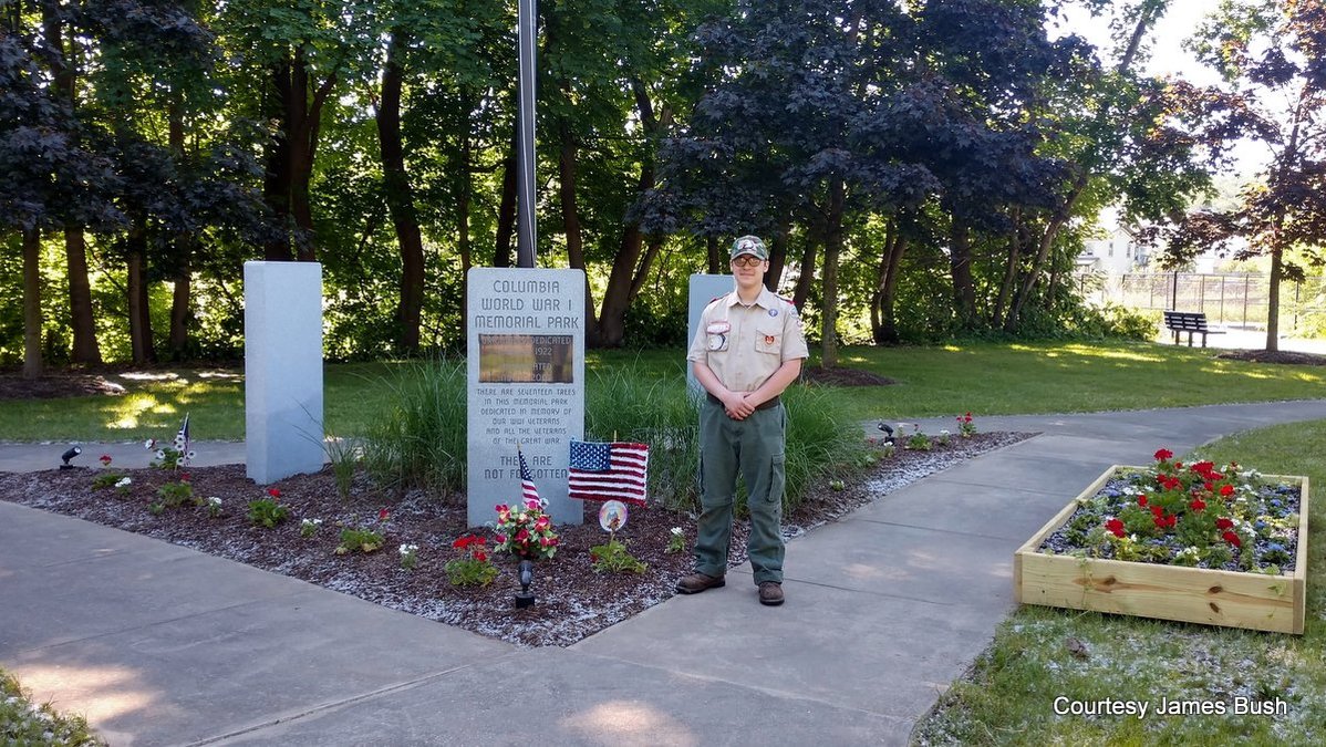 Boy Scout Quinton Thomas spearheaded the cleanup and improvements at the Columbia Street veterans memorial as part of his Eagle Scout service.