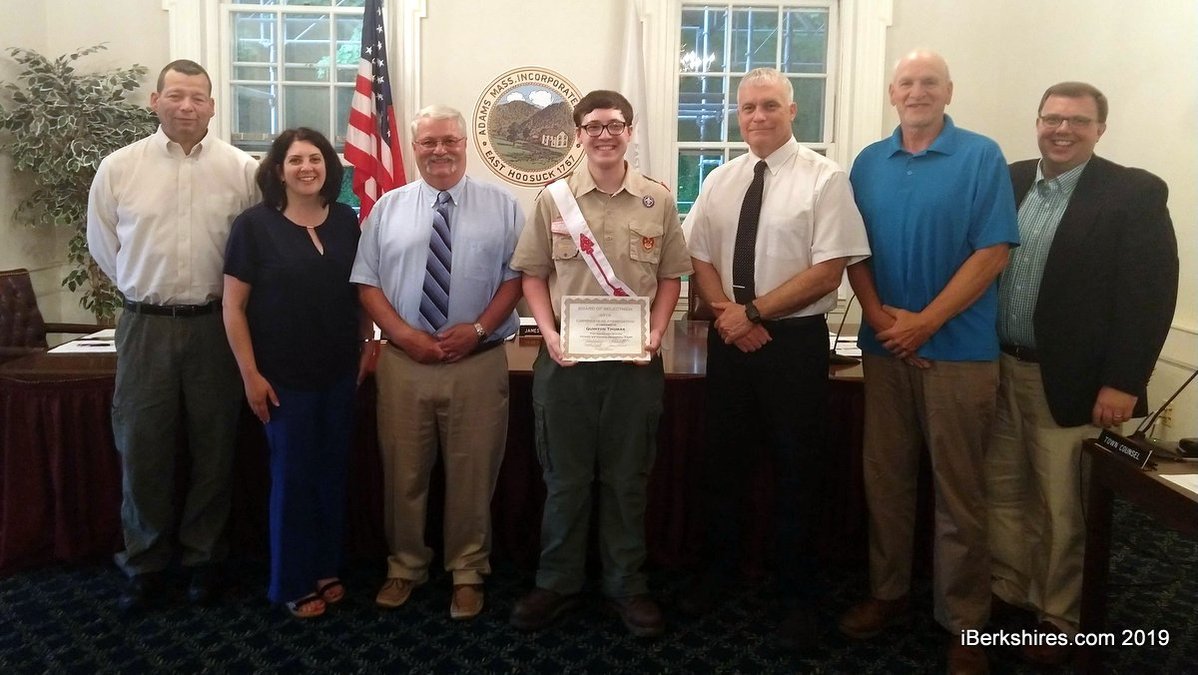 ADAMS, Mass. — The Selectmen last week thanked Boy Scout Quinton Thomas for spearheading a clean up of the town's Columbia World War I Memorial Park.